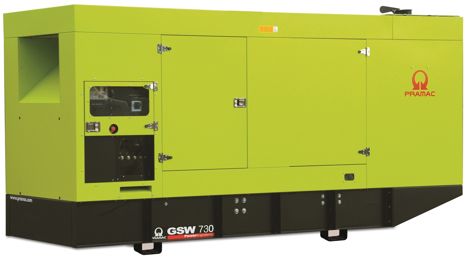Каталог магазина Worldgenerators.ru предлагает Дизельный генератор Pramac GSW 730M в кожухе с гарантией от производителя мощностью 527.1 кВт и напряжением на выходе 230/400 Вольт и ёмкостью бака 636 литров с официальной гарантией на официальном сайте Мир Генераторов